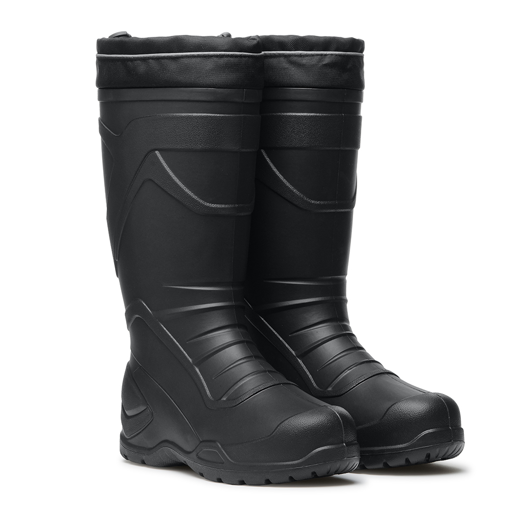Материал сапога - эластичный морозостойкий полимер специальной композиции EVA DU-Flex, по свойствам приближен к свойствам полиуретана, имеет высокую плотность при этом сохраняет малый вес, имеет высокие характеристики прочности и устойчивости к истиранию, жесткая "скрытая" подошва надежно защищает ногу от проколов и порезов.