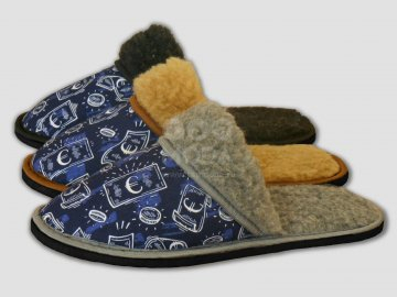Тапочки мужские с закрытым носком. Материал верха 70% - дублированная овечья шерсть с начесом. Окантовка-тесьма. Подошва-эвапласт толщина 5 мм цвет черный,коричневый, евро, доллар.